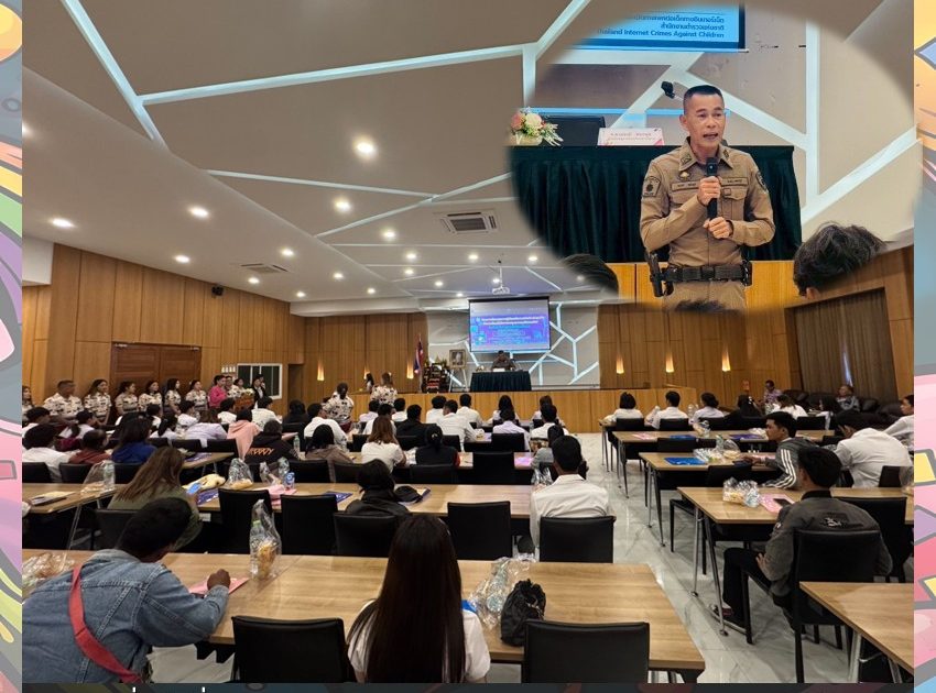 ด.ต.ณรงค์ ทองพูล ครูตำรวจแดร์ สภ.บ้านลาด บรรยายให้ความรู้กับนักศึกษา ศกร.ระดับอำเภอบ้านลาด เมื่อวันที่ 21 ส.ค.2568 เวลา 10.00 น.