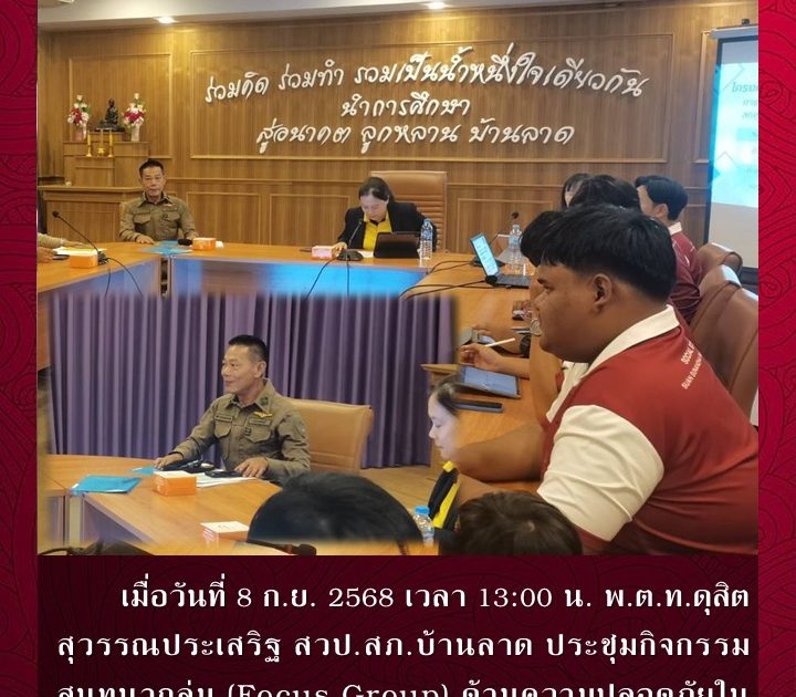 พ.ต.ท.ดุสิต สุวรรณประเสริฐ สวป.สภ.บ้านลาด ประชุมกิจกรรมสนทนากลุ่ม (Focus Group) ด้านความปลอดภัยในโรงเรียน เมื่อวันที่ 8 ก.ย. 2568 เวลา 13:00 น.
