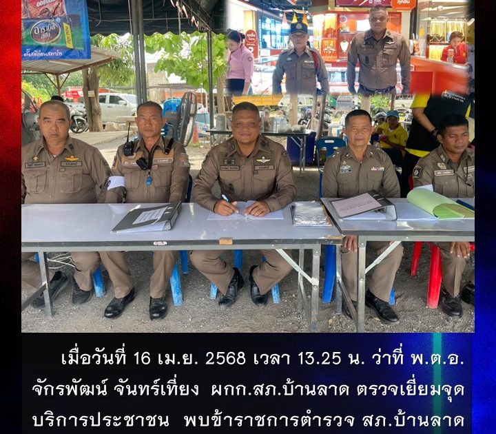 น. ว่าที่ พ.ต.อ.จักรพัฒน์ จันทร์เที่ยง ผกก.สภ.บ้านลาด ตรวจเยี่ยมจุดบริการประชาชน และร้านทอง เมื่อวันที่ 16 เม.ย. 2568
