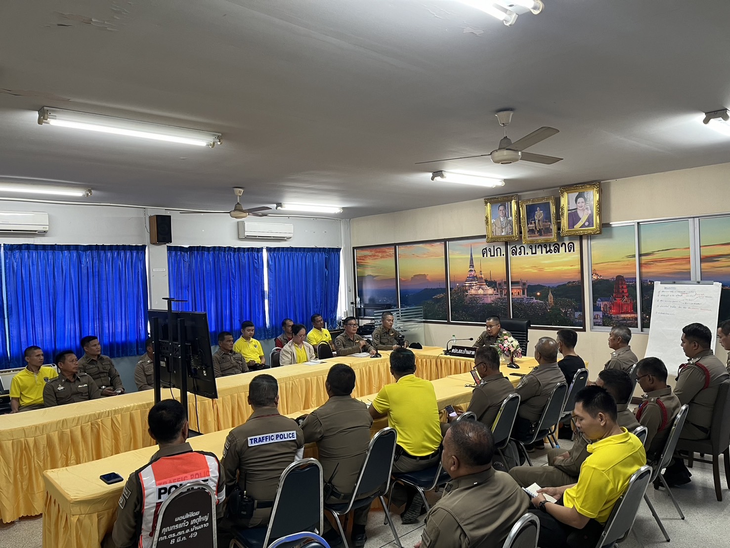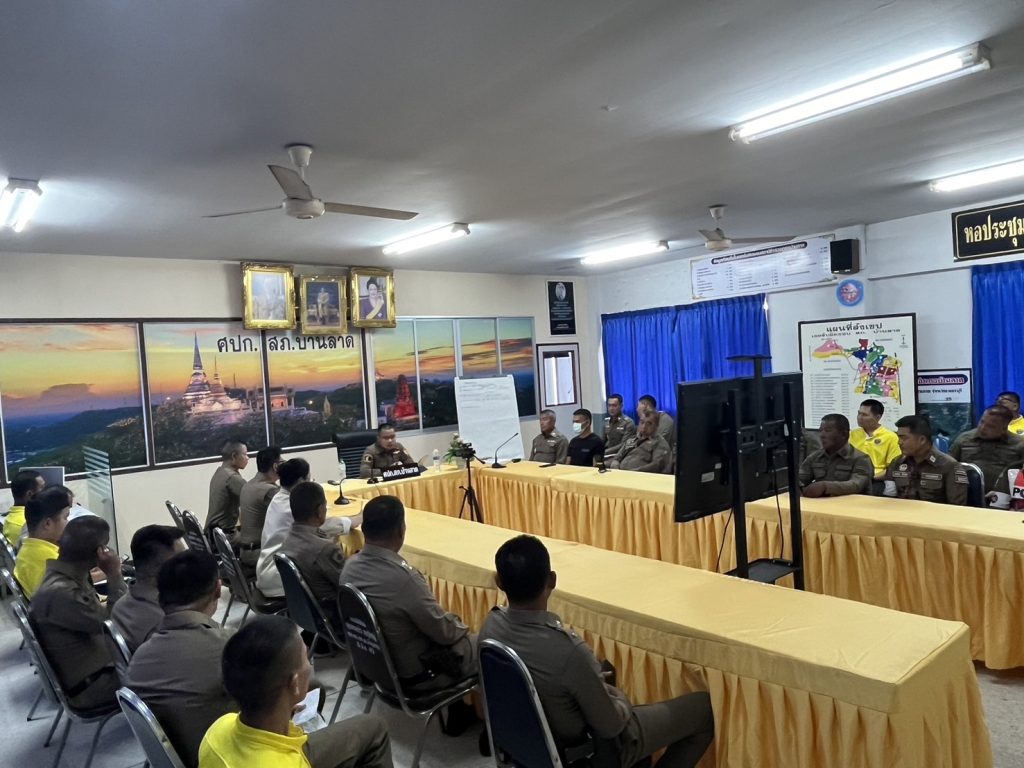 สวป.สภ.บ้านลาด, พ.ต.ท.บุญรอบ พวงแตง สว.สส.สภ.บ้านลาด, พ.ต.ท.ณรงค์รัชช์ ภัทรวิกรัยกุล สว.(สอบสวน) สภ.บ้านลาด, พ.ต.ท.หญิงชัชมาส เนาวรัตน์ สว.อก.สภ.บ้านลาดพร้อมด้วยข้าราชการตำรวจ สภ.บ้านลาด ประชุมบริหาร สภ.บ้านลาด ประจำสัปดาห์ ณ ห้องประชุม ศปก.สภ.บ้านลาด