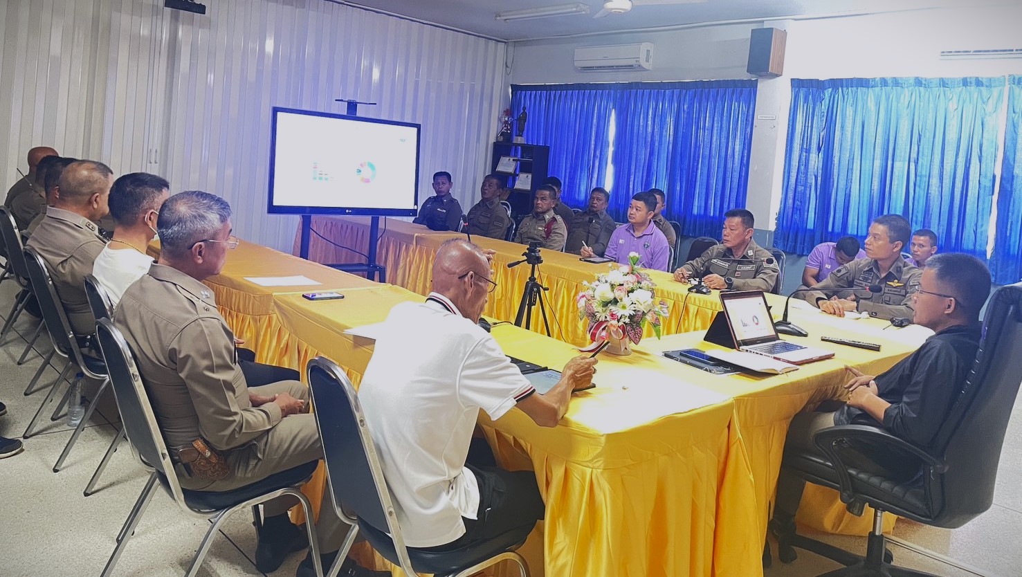 วันที่ 17 เม.ย.67 เวลา 09.00 น. ว่าที่ พ.ต.อ.อภิรักษ์ เพิ่มชัย ผกก.สภ.บ้านลาด, พ.ต.ท.ชาญยุทธ พวงสั้น รอง ผกก.ป.สภ.บ้านลาด, พ.ต.ท.นิมิตร์ วัดสุวรรณ์ รอง ผกก.(สอบสวน) สภ.บ้านลาด, พ.ต.ท.บรรจบ สิงห์สรศรี รอง ผกก.สส.สภ.บ้านลาด  พร้อมด้วยข้าราชการตำรวจ สภ.บ้านลาด ประชุมบริหาร สภ.บ้านลาด ประจำสัปดาห์ ณ ห้องประชุม ศปก.สภ.บ้านลาด
