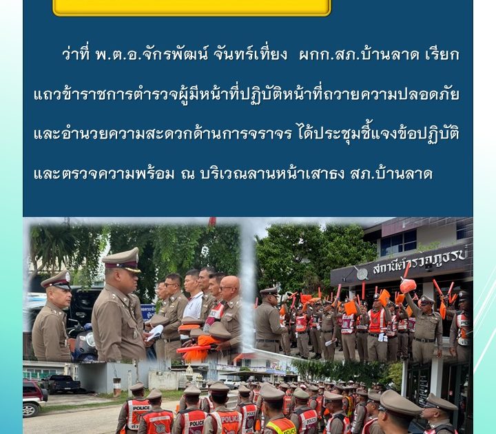 ว่าที่ พ.ต.อ.จักรพัฒน์ จันทร์เที่ยง ผกก.สภ.บ้านลาด ปล่อยแถวเตรียมความพร้อม เมื่อวันที่ 2 ก.ค. 68 เวลา 13.00 น.