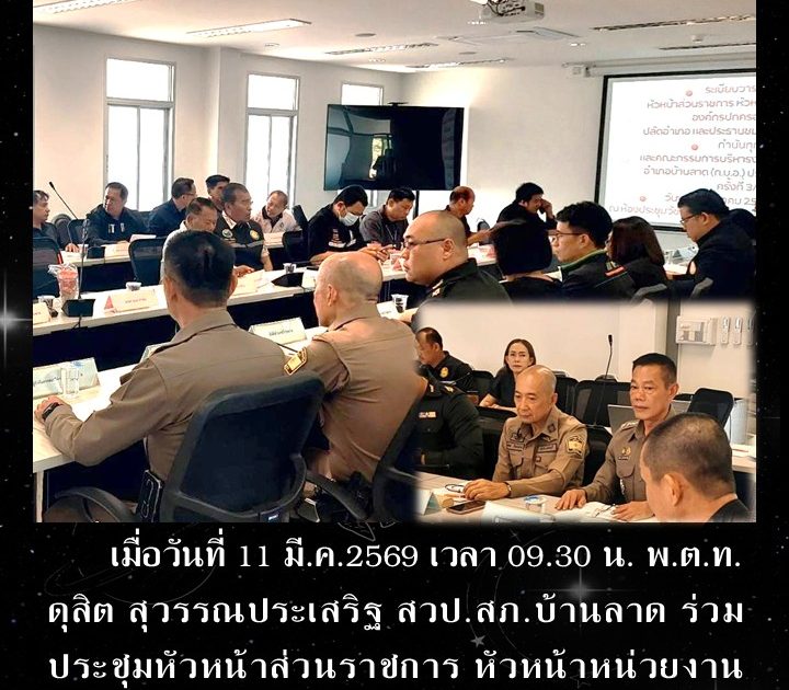 พ.ต.ท.ดุสิต สุวรรณประเสริฐ สวป.สภ.บ้านลาด ร่วมประชุมหัวหน้าส่วนราชการฯ เมื่อวันที่ 11 มี.ค.2569 เวลา 09.30 น.