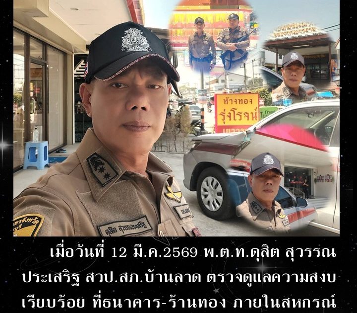 พ.ต.ท.ดุสิต สุวรรณประเสริฐ สวป.สภ.บ้านลาด ตรวจดูแลความสงบเรียบร้อย ที่ธนาคาร-ร้านทอง เมื่อวันที่ 12 มี.ค.2569