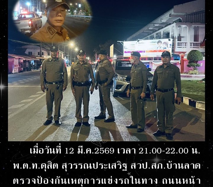 พ.ต.ท.ดุสิต สุวรรณประเสริฐ สวป.สภ.บ้านลาด ตรวจป้องกันเหตุการแข่งรถในทาง เมื่อวันที่ 12 มี.ค.2569 เวลา 22.00 น.