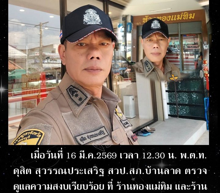 พ.ต.ท.ดุสิต สุวรรณประเสริฐ สวป.สภ.บ้านลาด ตรวจดูแลความสงบเรียบร้อย เมื่อวันที่ 16 มี.ค.2569 เวลา 12.30 น.