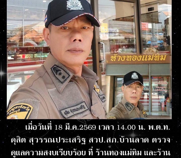 พ.ต.ท.ดุสิต สุวรรณประเสริฐ สวป.สภ.บ้านลาด ตรวจดูแลความสงบเรียบร้อย เมื่อวันที่ 18 มี.ค.2569 เวลา 14.00 น.