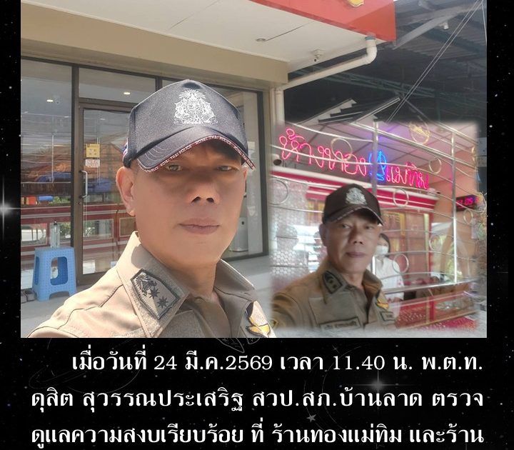 พ.ต.ท.ดุสิต สุวรรณประเสริฐ สวป.สภ.บ้านลาด ตรวจดูแลความสงบเรียบร้อย เมื่อวันที่ 24 มี.ค.2569 เวลา 11.40 น.