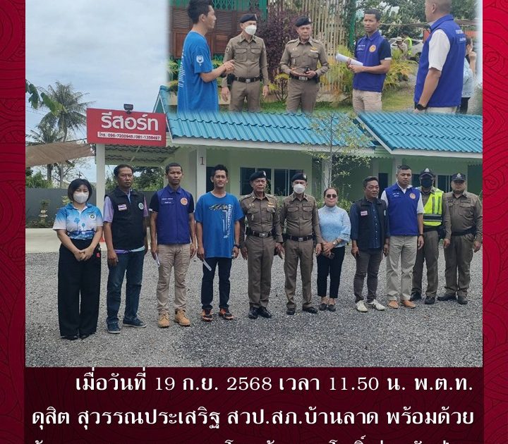 พ.ต.ท.ดุสิต สุวรรณประเสริฐ สวป.สภ.บ้านลาด ร่วมตรวจสถานที่พัก ครัววังบัวรีสอร์ท เมื่อวันที่ 19 ก.ย. 2568 เวลา 11.50 น.