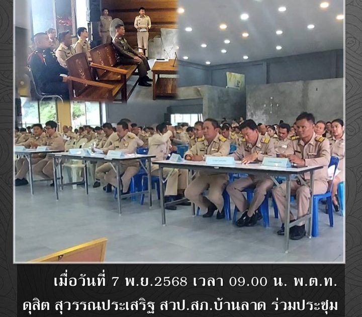 พ.ต.ท.ดุสิต สุวรรณประเสริฐ สวป.สภ.บ้านลาด ร่วมประชุมกำนัน ผู้ใหญ่บ้านฯ เมื่อวันที่ 7 พ.ย.2568 เวลา 09.00 น.