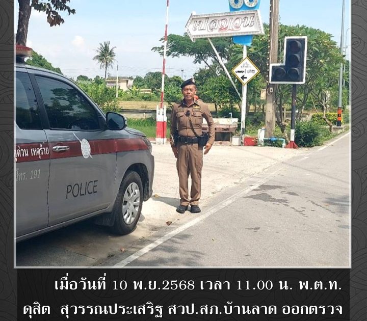 พ.ต.ท.ดุสิต สุวรรณประเสริฐ สวป.สภ.บ้านลาด ออกตรวจดูแลความสงบเรียบร้อย เมื่อวันที่ 10 พ.ย.2568 เวลา 11.00 น.
