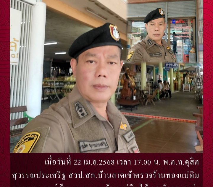 พ.ต.ท.ดุสิต สุวรรณประเสริฐ สวป.สภ.บ้านลาดเข้าตรวจร้านทองแม่ทิม เมื่อวันที่ 22 เม.ย.2568 เวลา 17.00 น.