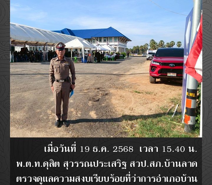 พ.ต.ท.ดุสิต สุวรรณประเสริฐ สวป.สภ.บ้านลาด ตรวจดูแลความสงบเรียบร้อย เมื่อวันที่ 19 ธ.ค. 2568 เวลา 15.40 น.