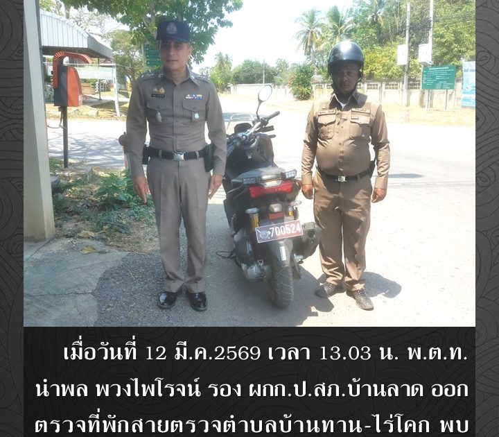 พ.ต.ท.นำพล พวงไพโรจน์ รอง ผกก.ป.สภ.บ้านลาด ออกตรวจที่พักสายตรวจตำบลบ้านทาน-ไร่โคก เมื่อวันที่ 12 มี.ค.2569 เวลา 13.03 น.