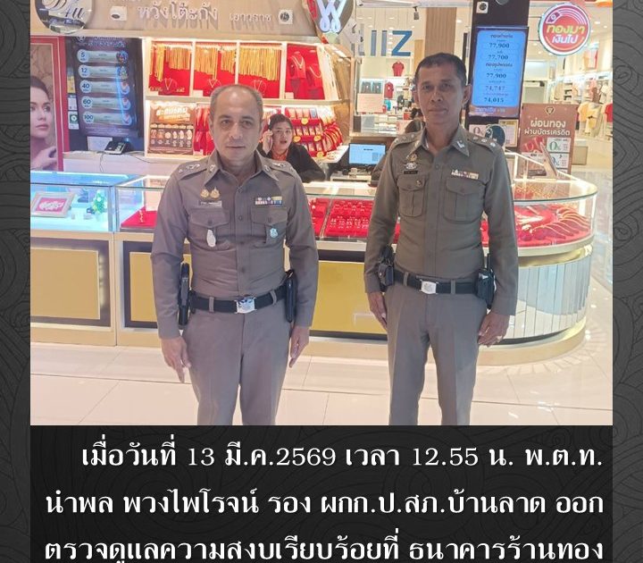 พ.ต.ท.นำพล พวงไพโรจน์ รอง ผกก.ป.สภ.บ้านลาด ออกตรวจดูแลความสงบเรียบร้อย เมื่อวันที่ 13 มี.ค.2569 เวลา 12.55 น.