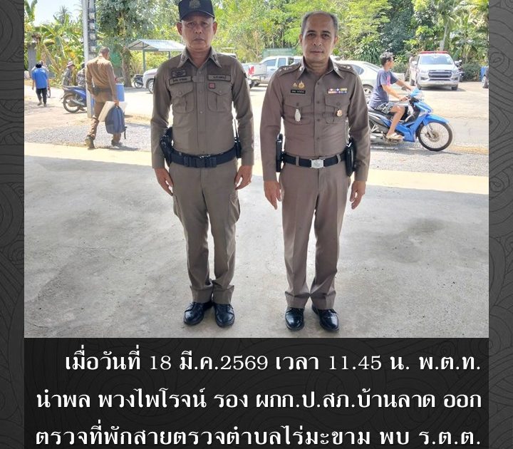 พ.ต.ท.นำพล พวงไพโรจน์ รอง ผกก.ป.สภ.บ้านลาด ออกตรวจที่พักสายตรวจตำบลไร่มะขาม เมื่อวันที่ 18 มี.ค.2569 เวลา 11.45 น.