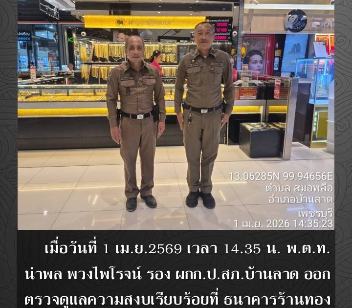 พ.ต.ท.นำพล พวงไพโรจน์ รอง ผกก.ป.สภ.บ้านลาด ออกตรวจดูแลความสงบเรียบร้อย เมื่อวันที่ 1 เม.ย.2569 เวลา 14.35 น.
