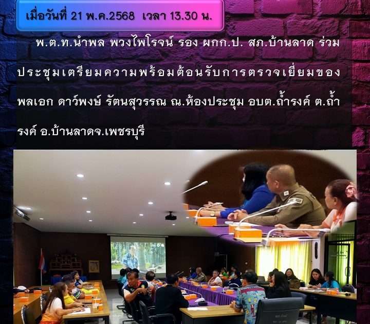 พ.ต.ท.นำพล พวงไพโรจน์ รอง ผกก.ป. สภ.บ้านลาด ร่วมประชุมเตรียมความพร้อมต้อนรับการตรวจเยี่ยมของ พลเอก ดาว์พงษ์ รัตนสุวรรณ เมื่อวันที่ 21 พ.ค.2568 เวลา 13.30 น.
