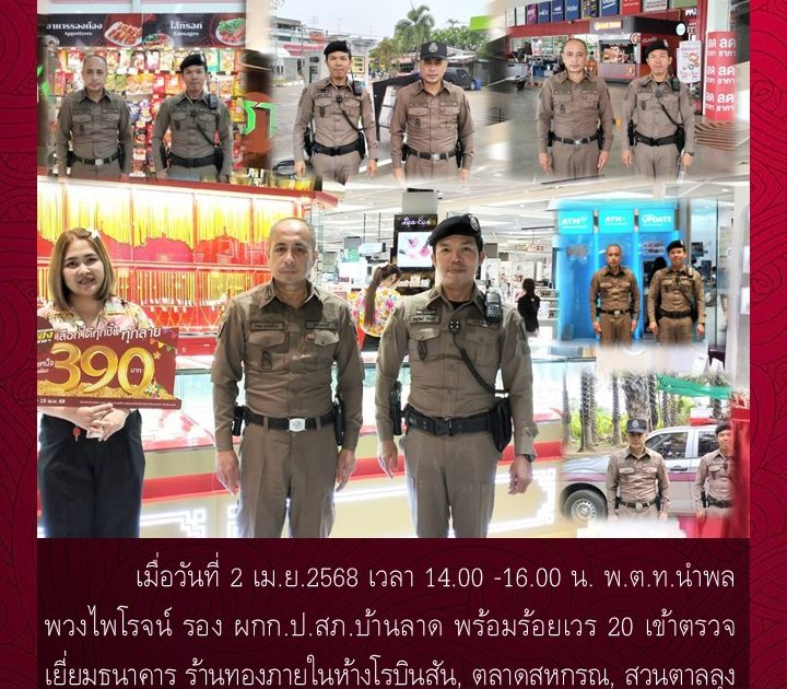 พ.ต.ท.นำพล พวงไพโรจน์ รอง ผกก.ป.สภ.บ้านลาด พร้อมร้อยเวร 20 เข้าตรวจจุดบริการ แหล่งท่องเที่ยว เมื่อวันที่ 2 เม.ย.2568 เวลา 14.00 -16.00 น.