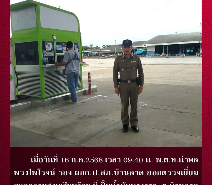 พ.ต.ท.นำพล พวงไพโรจน์ รอง ผกก.ป.สภ.บ้านลาด ออกตรวจเยี่ยมดูแลความสงบเรียบร้อย เมื่อวันที่ 16 ก.ค.2568 เวลา 09.40 น.