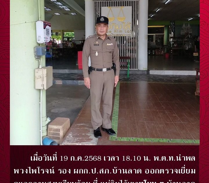 พ.ต.ท.นำพล พวงไพโรจน์ รอง ผกก.ป.สภ.บ้านลาด ออกตรวจเยี่ยมดูแลความสงบเรียบร้อย เมื่อวันที่ 19 ก.ค.2568 เวลา 18.10 น.