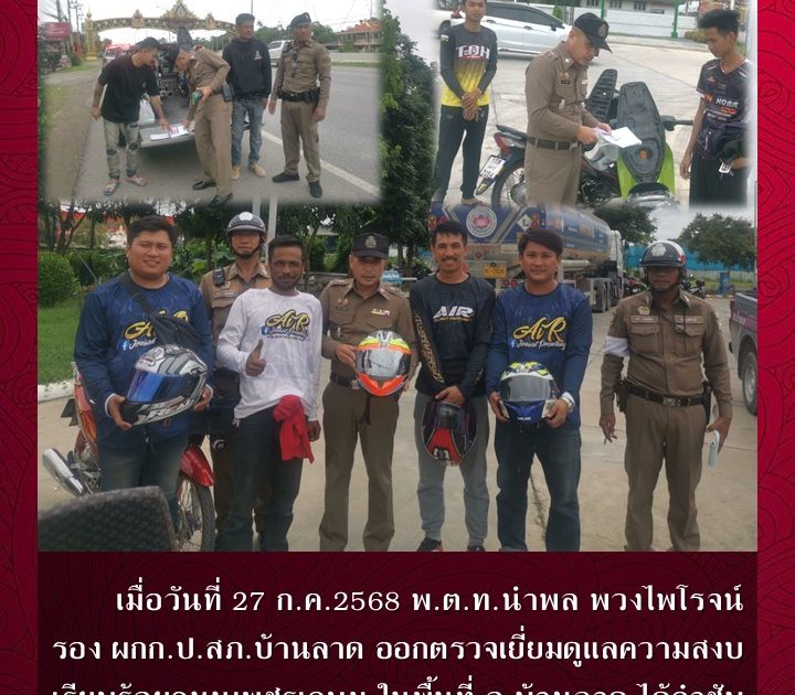 พ.ต.ท.นำพล พวงไพโรจน์ รอง ผกก.ป.สภ.บ้านลาด ออกตรวจเยี่ยมดูแลความสงบเรียบร้อยถนนเพชรเกษม ในพื้นที่ เมื่อวันที่ 27 ก.ค.2568