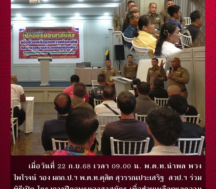 พ.ต.ท.นำพล พวงไพโรจน์ รอง ผกก.ป.ฯ พ.ต.ท.ดุสิต สุวรรณประเสริฐ สวป.ฯ ร่วมพิธีเปิด โครงการฝึกอบรมอาสาสมัครฯ เมื่อวันที่ 22 ก.ย.68 เวลา 09.00 น.
