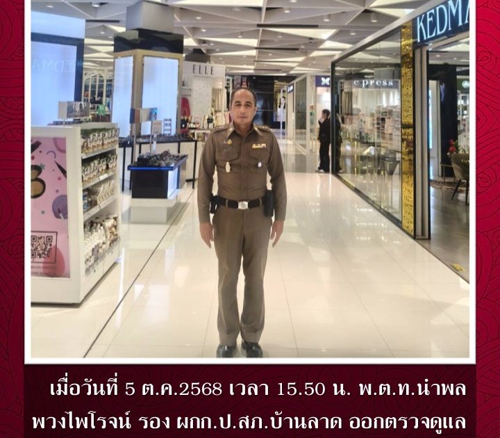 พ.ต.ท.นำพล พวงไพโรจน์ รอง ผกก.ป.สภ.บ้านลาด ออกตรวจดูแลความสงบเรียบร้อย เมื่อวันที่ 5 ต.ค.2568 เวลา 15.50 น.