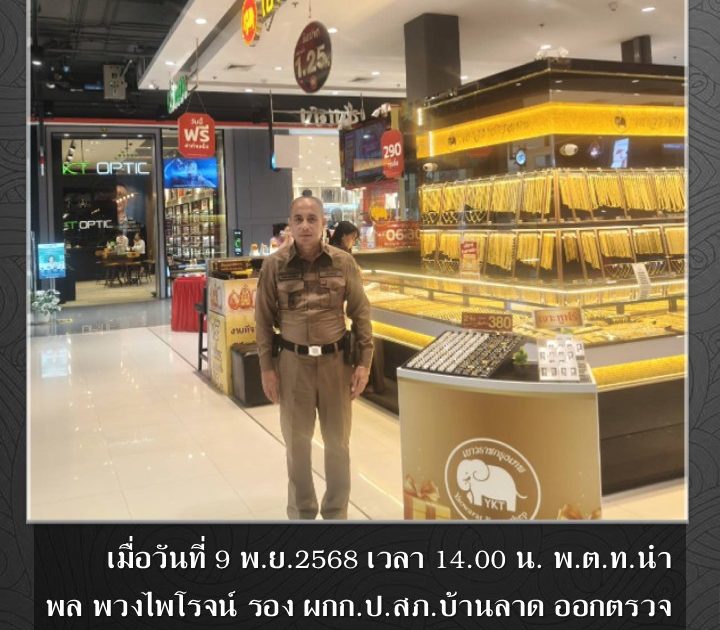 พ.ต.ท.นำพล พวงไพโรจน์ รอง ผกก.ป.สภ.บ้านลาด ออกตรวจดูแลความสงบเรียบร้อย เมื่อวันที่ 9 พ.ย.2568 เวลา 14.00 น.