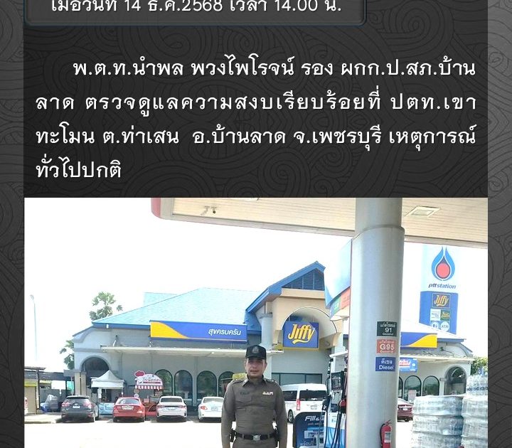 พ.ต.ท.นำพล พวงไพโรจน์ รอง ผกก.ป.สภ.บ้านลาด ตรวจดูแลความสงบเรียบร้อย เมื่อวันที่ 14 ธ.ค.2568 เวลา 14.00 น.