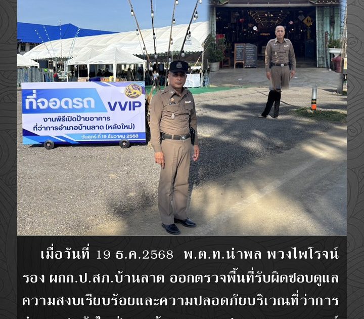 พ.ต.ท.นำพล พวงไพโรจน์ รอง ผกก.ป.สภ.บ้านลาด ออกตรวจพื้นที่รับผิดชอบดูแลความสงบเรียบร้อยและความปลอดภัย เมื่อวันที่ 19 ธ.ค.2568
