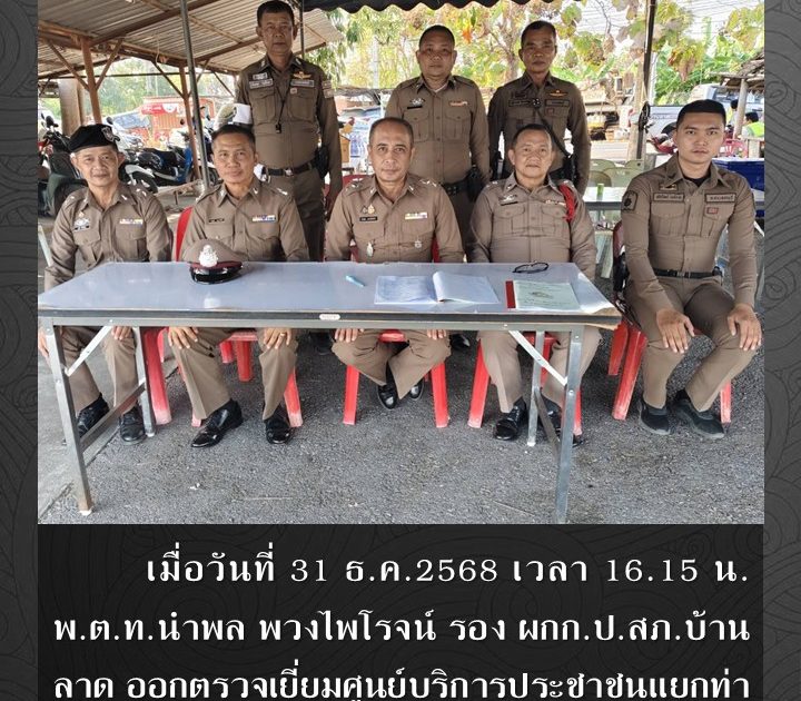 พ.ต.ท.นำพล พวงไพโรจน์ รอง ผกก.ป.สภ.บ้านลาด ออกตรวจเยี่ยมศูนย์บริการประชาชนแยกท่าศาลา เมื่อวันที่ 31 ธ.ค.2568 เวลา 16.15 น.