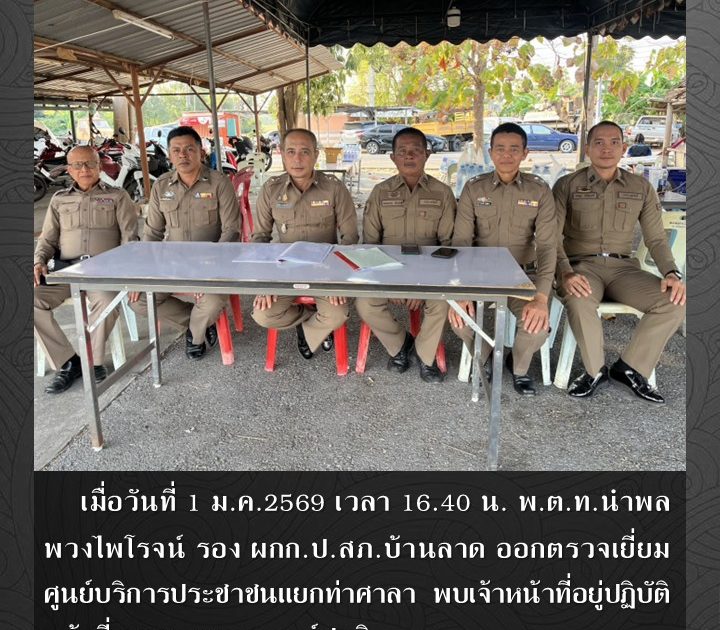 พ.ต.ท.นำพล พวงไพโรจน์ รอง ผกก.ป.สภ.บ้านลาด ออกตรวจเยี่ยมศูนย์บริการประชาชนแยกท่าศาลา เมื่อวันที่ 1 ม.ค.2569 เวลา 16.40 น.