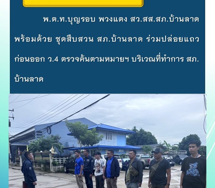 พ.ต.ท.บุญรอบ พวงแตง สว.สส.สภ.บ้านลาด พร้อมด้วย ชุปล่อยแถว ก่อนออกตรวจค้นตามหมายฯ เมื่อวันที่ 14 มิ.ย.2568 เวลา 06.10 น.