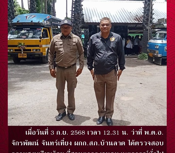 พ.ต.อ.จักรพัฒน์ จันทร์เที่ยง ผกก.สภ.บ้านลาด ได้ตรวจสอบความสงบเรียบร้อย เมื่อวันที่ 3 ก.ย. 2568 เวลา 12.31 น.