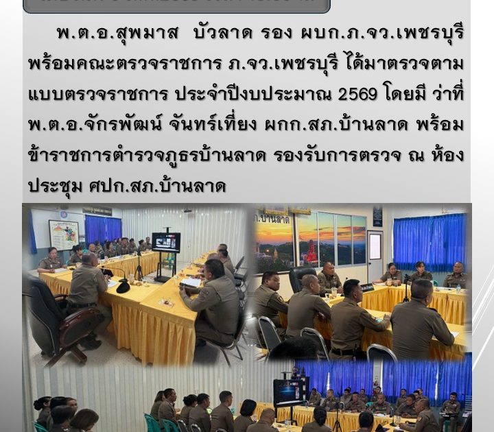 พ.ต.อ.สุพมาส บัวลาด รอง ผบก.ภ.จว.เพชรบุรีพร้อมคณะตรวจราชการ ภ.จว.เพชรบุรี ได้มาตรวจตามแบบตรวจราชการ เมื่อวันที่ 6 มี.ค.2569 เวลา 10.00 น.