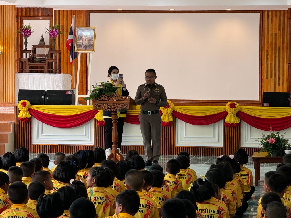 วันนี้ 26 มิ.ย. 2567 เวลา 08.30 น. ว่าที่ พ.ต.อ. อภิรักษ์ เพิ่มชัย ผกก.สภ.บ้านลาด พร้อมกำลังข้าราชการตำรวจ สภ.บ้านลาด รวม 10 นาย เข้าร่วมกิจกรรมการต่อต้านยาเสพติด รณรงค์ประชาสัมพันธ์ เพื่อตระหนักถึงพิษภัยของยาเสพติด ให้แก่นักเรียน โรงเรียนวัดโพธิ์กรุ (ผินผดุง) เนื่องในวันต่อต้านยาเสพติดโลก ณ โรงเรียนวัดโพธิ์กรุ (ผินผดุง)