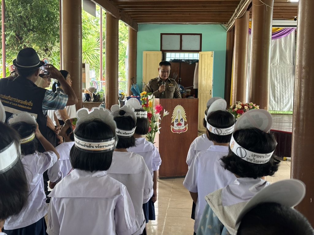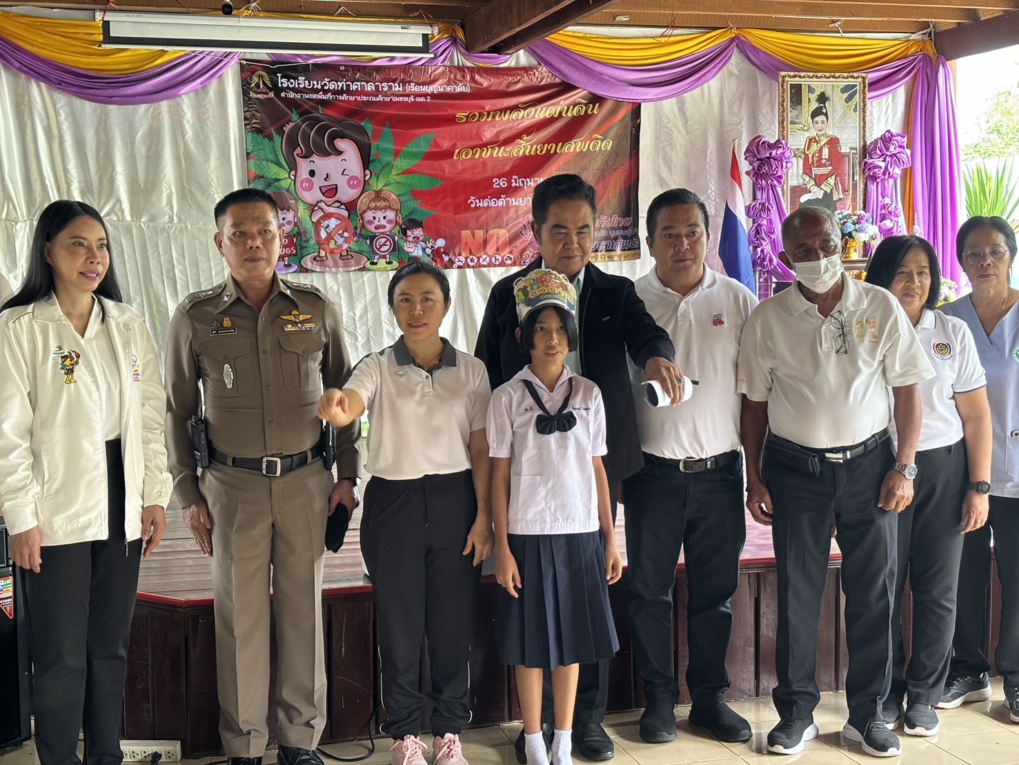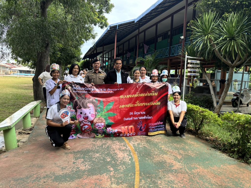 เมื่อวันที่ 26 มิถุนายน 2567 เวลา 08.30 น. พ.ต.ท.ดุสิต สุวรรณประเสริฐ สวป.สภ.บ้านลาด ร่วมกับฝ่ายปกครองท้องถิ่น,ครู,นักเรียนและบุคลากรของโรงเรียนวัดท่าศาลาราม ร่วมกิจกรรมแสดงพลังต่อต้านยาเสพติดเนื่องในวันต่อต้านยาเสพติดโลก ณ โรงเรียนวัดท่าศาลาราม ต.ท่าเสน อ.บ้านลาด จ.เพชรบุรี โดยมี นายประสงค์ หอมนาน นายก อบต.ท่าเสน เป็นประธาน