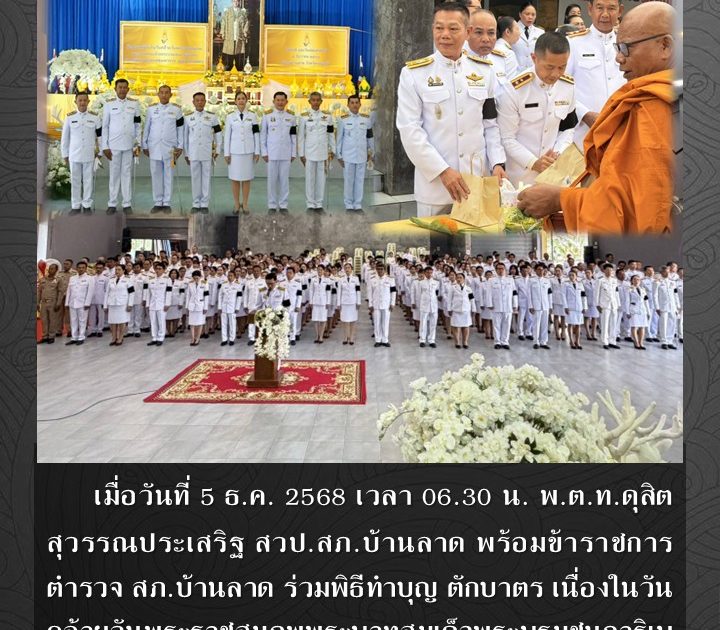 ร่วมพิธีทำบุญ ตักบาตร เนื่องในวันคล้ายวันพระราชสมภพพระบาทสมเด็จพระบรมชนการิเบศร มหาภูมิพลอดุลยเดชมหาราช บรมนาถบพิตร วันพ่อแห่งชาติ เมื่อวันที่ 5 ธ.ค. 2568 เวลา 06.30 น.
