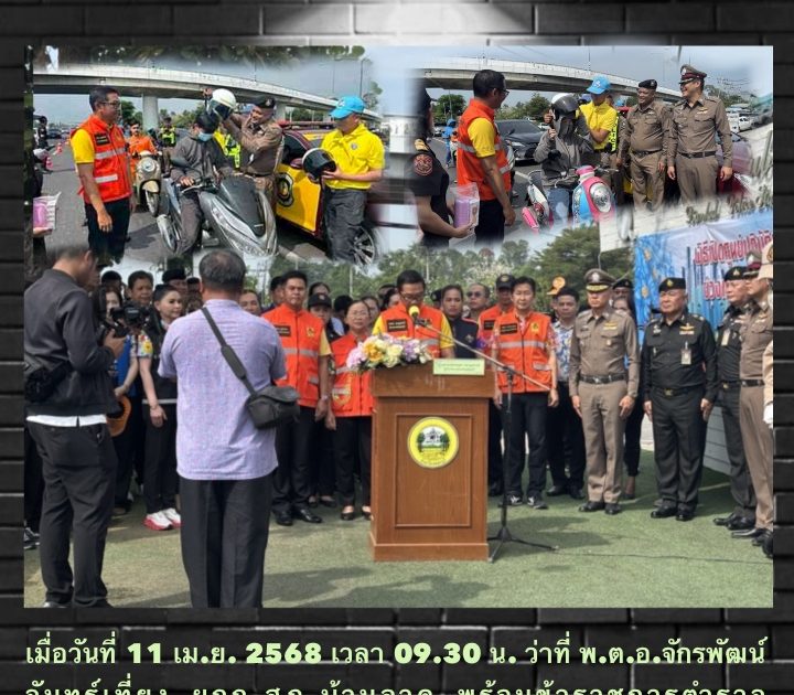 ร่วมพิธีเปิดศูนย์ปฏิบัติการป้องกันและลดอุบัติเหตุทางถนนช่วงเทศกาลสงกรานต์ พ.ศ.2568 และแจกหมวกนิรภัย จากโครงการจิตอาสาจราจร แก่ประชาชนที่สัญจรผ่าน เมื่อวันที่ 11 เม.ย. 2568 เวลา 09.30 น.