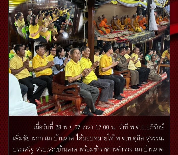 ร่วมพีธีสวดมเจริญพระพุทธมนต์และเจริญจิตภาวนาฯ เมื่อวันที่ 28 พ.ย.67 เวลา 17.00น.