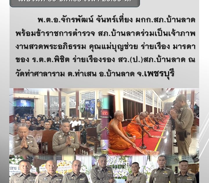 ร่วมเป็นเจ้าภาพงานสวดพระอภิธรรม คุณแม่บุญช่วย ร่ายเรือง มารดาของ ร.ต.ต.พิชิต ร่ายเรืองรอง สว.(ป.)สภ.บ้านลาด เมื่อวันที่ 30 ธ.ค.68 เวลา 20.00 น.