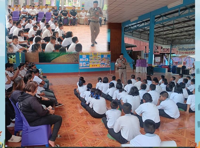 ร.ต.ท.พชร รามเมือง รอง สว.(ป)สภ.บ้านลาด พร้อมทีมงานจราจร เป็นวิทยากรบรรยายในกิจกรรมวันต่อต้านยาเสพติดโลกที่โรงเรียนวัดศาลาเขี่อน เมื่อวันที่ 26 มิ.ย.68 เวลา 13.00 น.