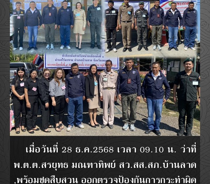 ว่าที่ พ.ต.ต.สรยุทธ มณฑาทิพย์ สว.สส.สภ.บ้านลาด,พร้อมชุดสืบสวน ออกตรวจป้องกันการกระทำผิดกฎหมายการเลือกตั้ง เมื่อวันที่ 28 ธ.ค.2568