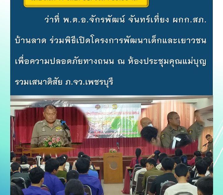 ว่าที่ พ.ต.อ.จักรพัฒน์ จันทร์เที่ยง ผกก.สภ.บ้านลาด ร่วมพิธีเปิดโครงการพัฒนาเด็กและเยาวชนเพื่อความปลอดภัยทางถนน เมื่อวันที่ 17 มิ.ย. 68. เวลา 09.00 น.