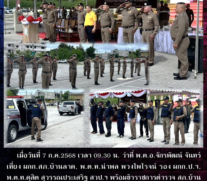 ว่าที่ พ.ต.อ.จักรพัฒน์ จันทร์เที่ยง ผกก.สภ.บ้านลาด ร่วมพิธีเปิด การประกวดการฝึกประจำปี 2568 เมื่อวันที่ 7 ก.ค.2568 เวลา 09.30 น.