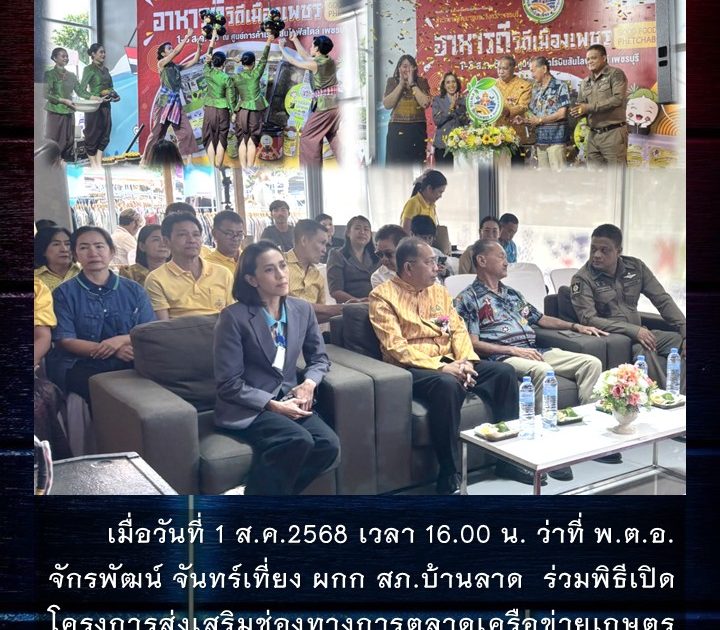 ว่าที่ พ.ต.อ.จักรพัฒน์ จันทร์เที่ยง ผกก สภ.บ้านลาด ร่วมพิธีเปิดโครงการส่งเสริมช่องทางการตลาดเครือข่ายเกษตรปลอดภัย เมื่อวันที่ 1 ส.ค.2568 เวลา 16.00 น.