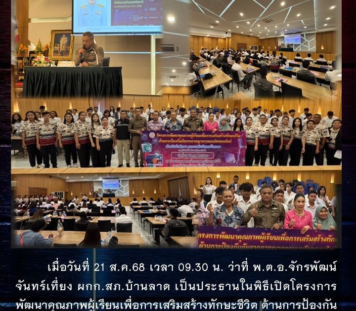 ว่าที่ พ.ต.อ.จักรพัฒน์ จันทร์เที่ยง ผกก.สภ.บ้านลาด เป็นประธานในพิธีเปิดโครงการพัฒนาคุณภาพผู้เรียนเพื่อการเสริมสร้างทักษะชีวิตฯ เมื่อวันที่ 21 ส.ค.68 เวลา 09.30 น.