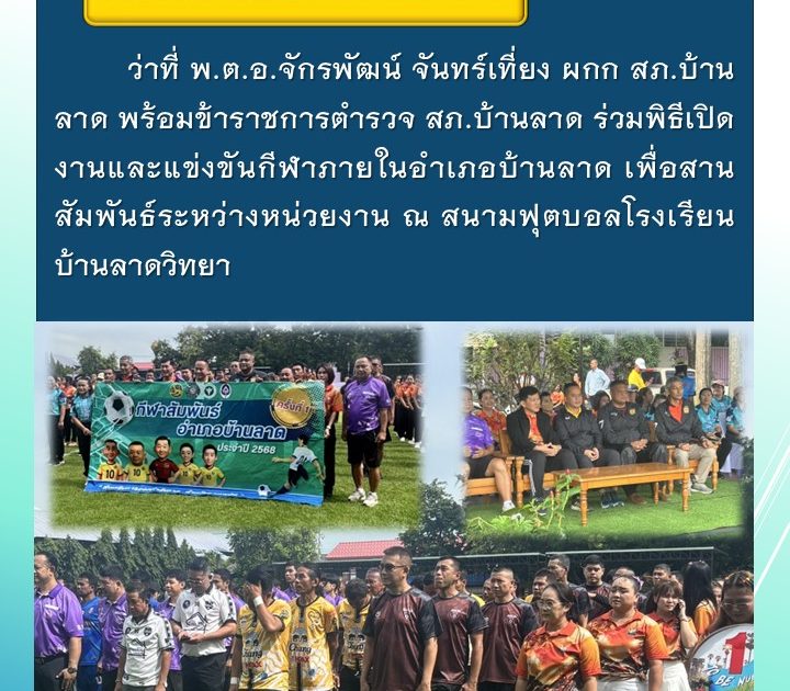 ว่าที่ พ.ต.อ.จักรพัฒน์ จันทร์เที่ยง ผกก สภ.บ้านลาด ร่วมพิธีเปิดงานและแข่งขันกีฬาภายในอำเภอบ้านลาด เมื่อวันที่ 22 ก.ย.2568 เวลา 09.30 น.