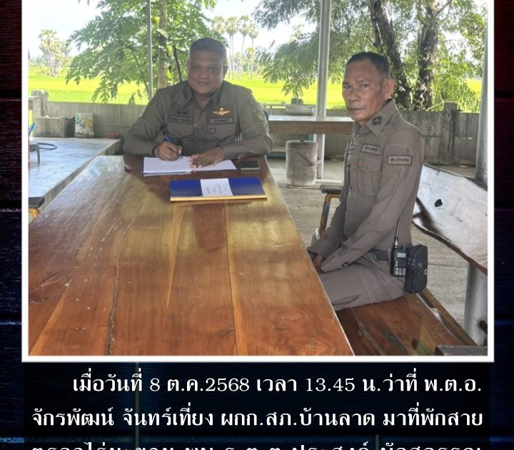 ว่าที่ พ.ต.อ.จักรพัฒน์ จันทร์เที่ยง ผกก.สภ.บ้านลาด ตรวจเยี่ยมที่พักสายตรวจไร่มะขาม เมื่อวันที่ 8 ต.ค.2568 เวลา 13.45 น.
